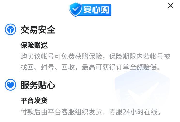 在条件一般的玩家们看来,买账号,最关键的就是安全问题,一旦买完账号被登陆回去,并重新改绑,等同于自己上了一个大当,钱花掉了同时号也没完全到自己手里,而在交易猫平台中,这种情况几乎不会出现,原因是平台给出了保障,上面明确写着,一旦出现顶号、改绑的情况,将由平台负责赔付,毕竟买家和卖家都在平台进行了实名,所以不必担心自己会上当受骗。