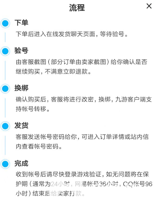 3、玩家们在线进行了下单过后,系统就会开始提示大家进入到整个交易流程当中。其中的一个重要环节就是验号和换绑,这两个步骤分别针对买家和卖家,让大家可以更有效率的完成游戏号的处理。