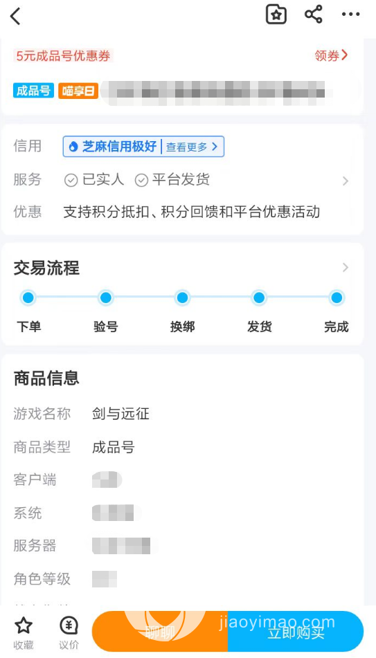 3、玩家们在找到自己满意的账号时,可以进入到详情页当中查看更具体的商品描述,大家可以和商家在线沟通价格,也可以直接选择立即购买来开启交易流程。大家得到了游戏账号之后,就可以去体验到更多趣味内容了。