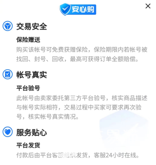 小编之前用交易猫最在意的就是安全问题,像是外面的网络卖家可能会找一些人去担保,但真正找回后根本没人处理,可交易猫是正规的大平台,所有入驻商家都得实名认证,更何况平台还有赠送的“安心购”,这个保险是不需要买家出钱去买的,在选号的时候留意一下即可。