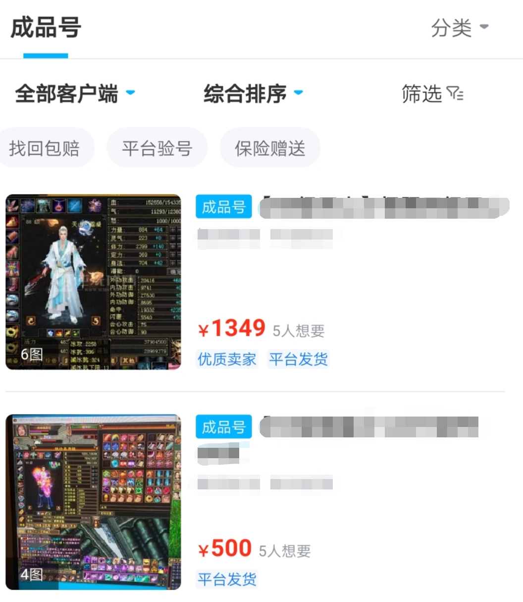 平台上有很多天龙八部怀旧服的账号,大家可以先进入专区里面去,然后再通过条件筛查来锁定自己想要的账号,比如设置账号价格区间,还可以挑选其他服务,是否赠送保险、是否支持极速换绑、是否有平台验号等等。勾选的条件越详细,那么就越快找到自己想要的账号。