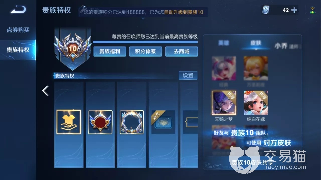 王者荣耀的账号交易在国内目前的市场中需求量是最大的,这不仅仅是受众于该游戏的热度,还有交易猫平台独有的推流算法。v10王者号能卖多少钱最近很多小伙伴都在问,感觉自己氪金数特别多在必要的时候可以拿出来应急,接下来就由小编给大家分析一下V10王者号在交易猫内平均售卖价格和价值都体现在哪里。