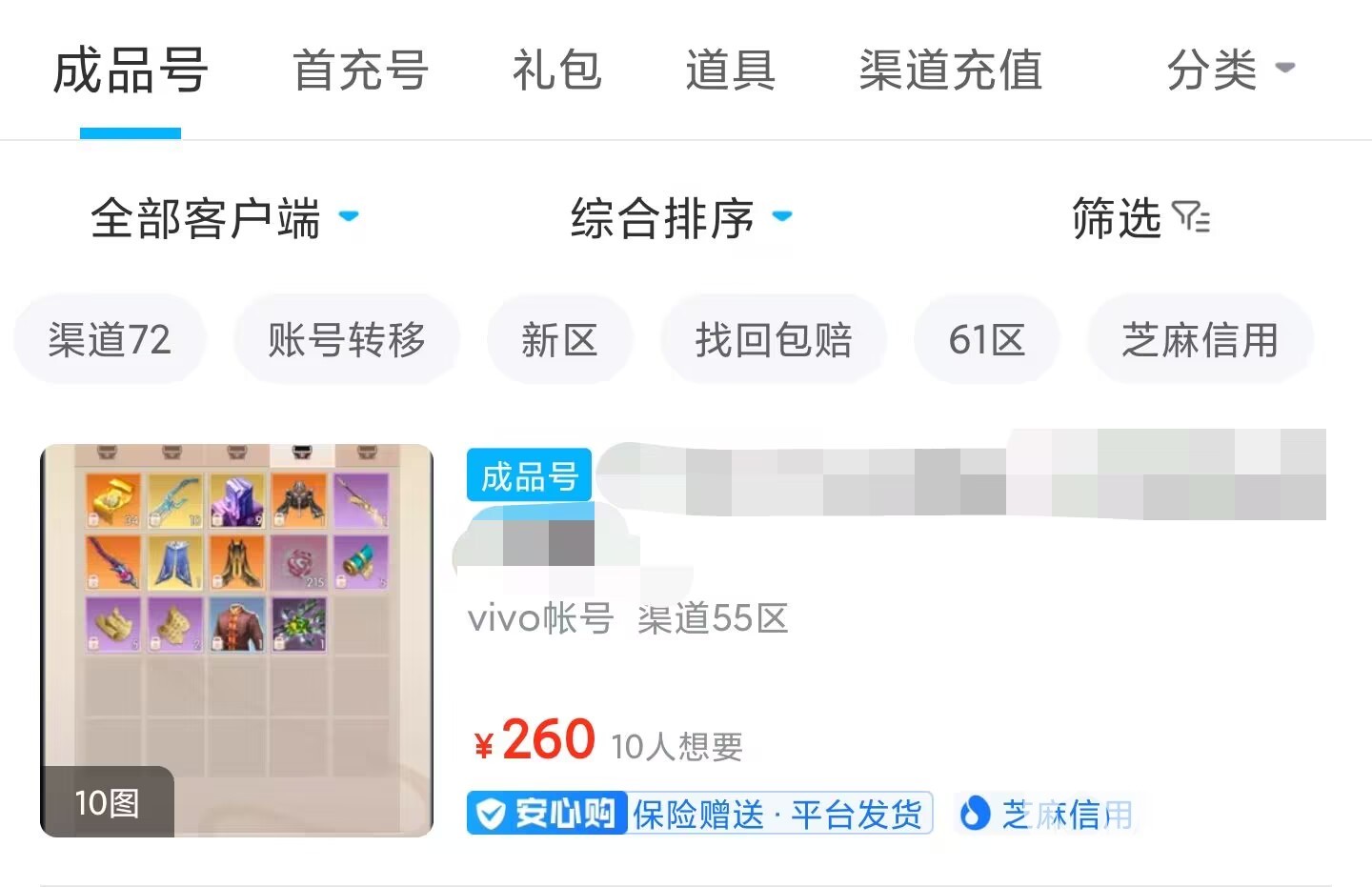 再者就是平台内的界面都非常的简洁但是实用,就拿商品的主页界面来说,用户们主要看到的就是截图+安心购服务项目+商品价格+商品标题+卖家个人信用以及详细信息参数这些内容,在这里重点要提的是账号的价格是可以进行沟通谈谈,所以不要卖家标多少就付款多少,基本都会留一个给大家议价的空间,大概是在九折以上。