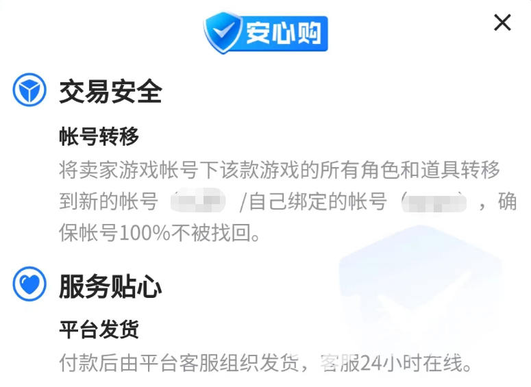 交易猫当中的商家都需要经过严格的审查,每一个账号都得经过实名认证之后才可上架商品,就算是出现了小概率的找回,平台也会赠送安心购来进行保障,这类保险平时在其他平台都是需要花钱的,而在交易猫里不收取一分钱费用,就直接将免费的保险加在你们的交易当中。