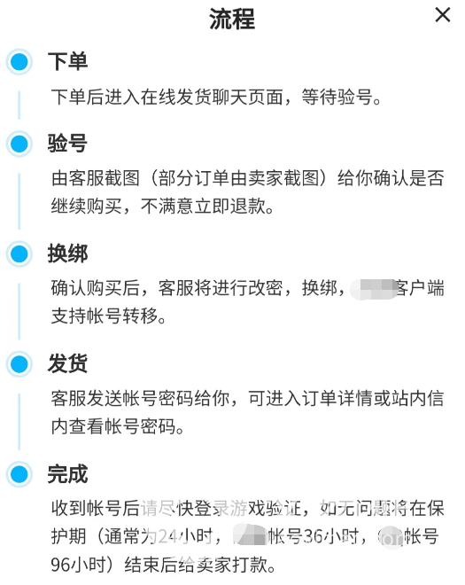 其实很多人都了解过交易猫平台,但就不知它是如何的一个形式,但交易猫的透明交易流程就摆在每一个主页当中,作为卖家和买家如果建立交易,客服就会第一时间介入进来辅助交易,这样买家既能验号还能享受平台发货,就感觉是在平台手里买号而不是在个人手里买号,这样是不是听起来就安全?