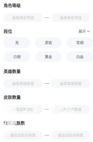 1.好用又简单的检索功能,帮你快速找到需要的账号。就以峡谷之巅账号为例,用户在购买前,可以在搜索的菜单栏中,对段位、角色等级、英雄和皮肤数量进行选择,完成挑选之后,再点击搜索,就可以看到满足关键词要求的账号,用户再进行对比,就能找到最佳的账号。