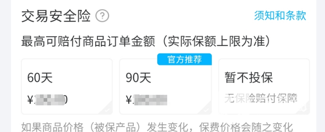 买号的时候还可以附带买一份交易保险,保险可以让大家享受到安心的售后服务,这样就不怕对方找回账号了。交易猫承诺购买保险后一旦对方找回账号,平台包赔付。小伙伴就能放心买号,并且安心使用账号来玩游戏了。