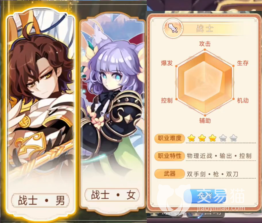 这个职业在游戏中是最适合新手玩家的职业之一,该职业的初始面板各项属性数据发展均衡,在拥有一定的坦度的情况下还能拥有强大的物理输出伤害,而且除了基础的宝剑,玩家还可以更换其他武器,并且攻击范围可以随着武器的更换改编而变化,增加了玩家的生存能力,而且该职业的技能连招还能产生一定的控制效果。