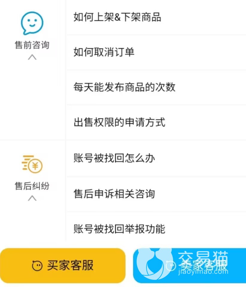 除此之外,在交易猫平台,为了让更多的买家有很好的体验感,交易猫平台在更新了客服系统之后,增加了更多问题的反馈,在其它平台没有的服务,在交易猫平台都可以找到,不止于此,交易猫的客服也会实时在线为玩家解决各种问题。