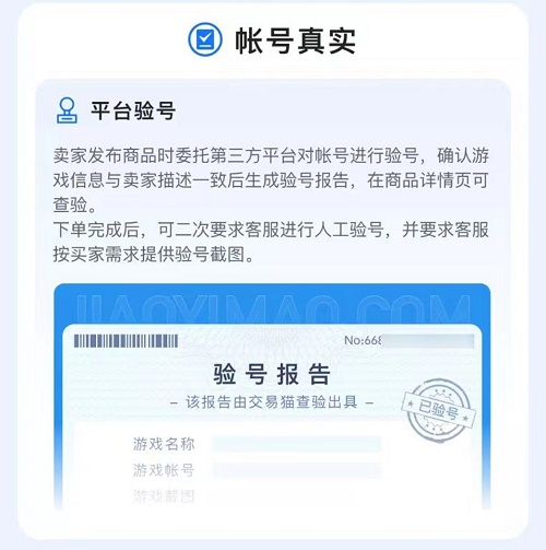 在这个平台上不仅会对每个卖家进行认证,还会对商家上架的账号进行认证,每个上架的商品填写完信息后,都要经过平台的检验,用来确定所描述的账号同账号本身是否一致,不仅如此,如果在购买之前还是有所顾虑,可以再次向平台提出,验号!给我验!并且还可以要求平台出具验号凭证,这些都是平台给提供的免费服务,保障了你所购买的账号安全放心,不会出现夸大账号的问题。
