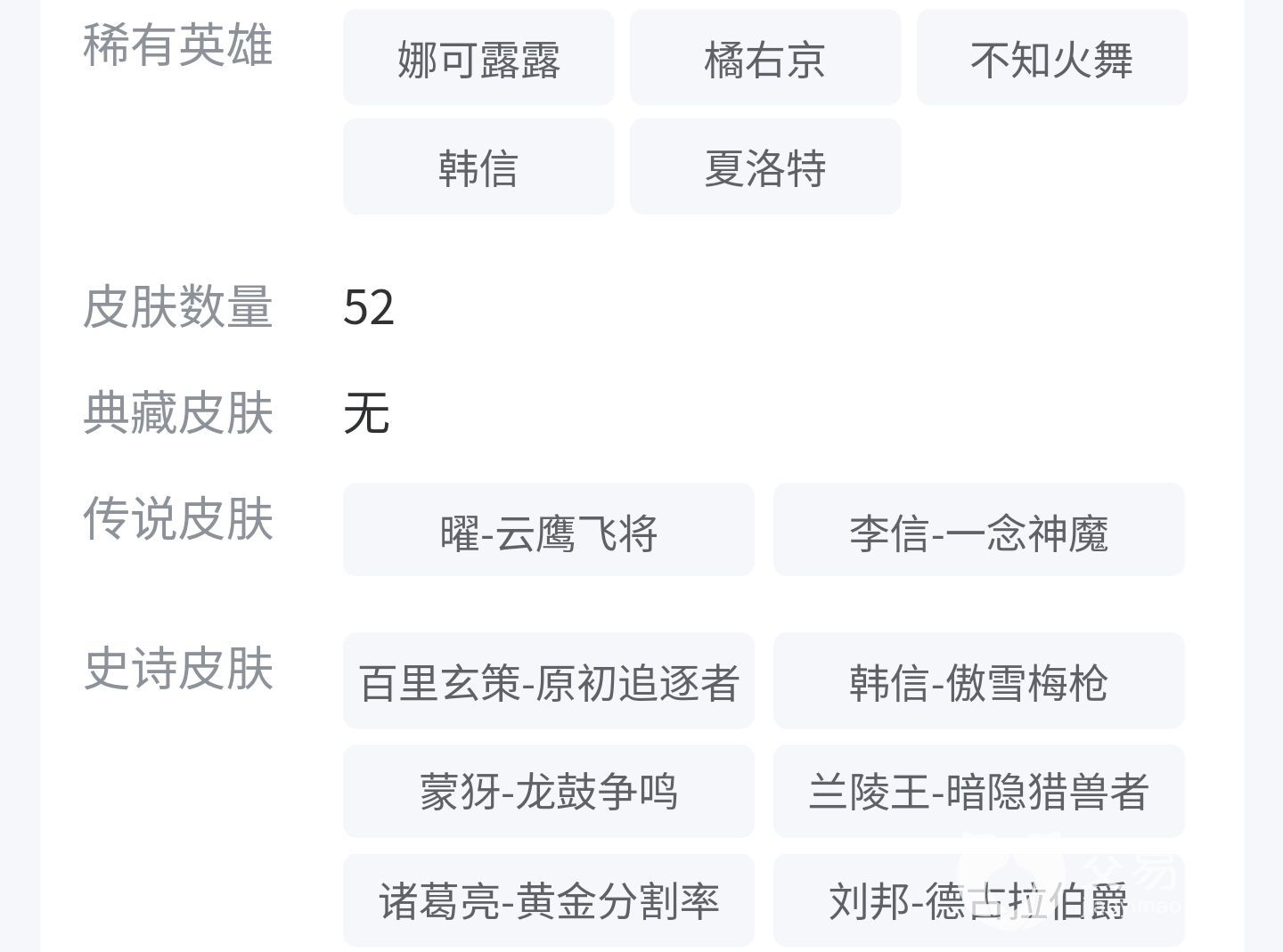 王者的皮肤分为很多种,其中价值最高的就是荣耀典藏的皮肤,最近退出的很多星元皮肤虽然属于配件的一种,但是使用300个高额紫星币兑换这所需要花费的资源还是相当的,另外就是一些已经不再售卖的绝版皮肤,每当玩家们喜欢某个英雄却发现没有皮肤的时候手感会差很多,如果感觉一个又一个的买很不划算的话那就可以在交易猫内直接入手个成品号。