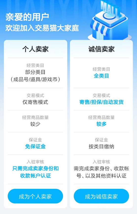 2、处理的方式其实也非常简单,各位只需要进入到交易猫平台当中去认证一个卖家身份即可。因为平台当中只有获得了卖家的资格后,大家才可以自由发布商品来进行交易。当玩家们成功的将自己的游戏号进行发布之后,其他买家就可以在交易猫当中浏览到各位的商品了。