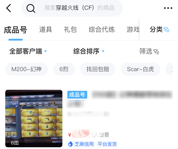 第三种就是比较传统的老方法了,看一下正在出售的账号中有没有跟我们号差不多情况的,人家的挂价是多少,这样就能够根据这些商品的情况来进行推测了。大家在浏览商品的时候不要忘记活用平台的筛选和搜索功能,这样就可以完成快速定位,提升估价的效率和精度哦。