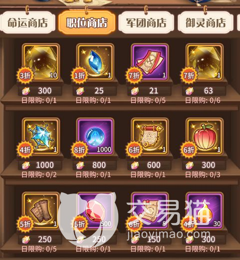 其中有一个是与职位相关的商店,它会依据玩家自身的等级解锁各类道具,其中女神泪还有神陨都是最推荐各位去换取的,其他的东西各位就可以自行选择了。