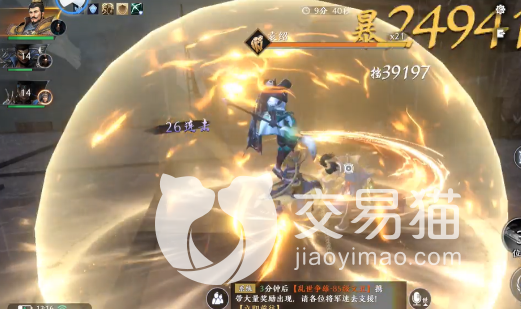 2、夏侯惇的用途就是打出一套普通攻击之后,就能不断的减少袁绍的霸体值;当他的霸体值低到一定的程度时,就可以接着下一步操作。