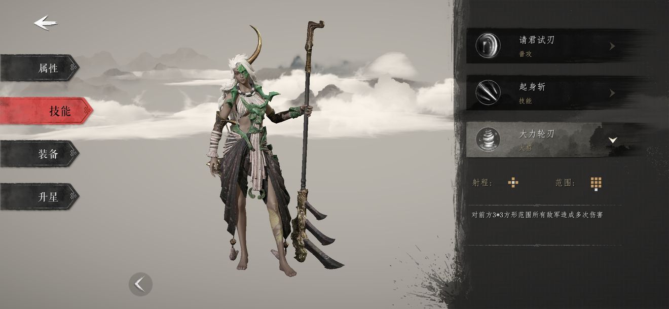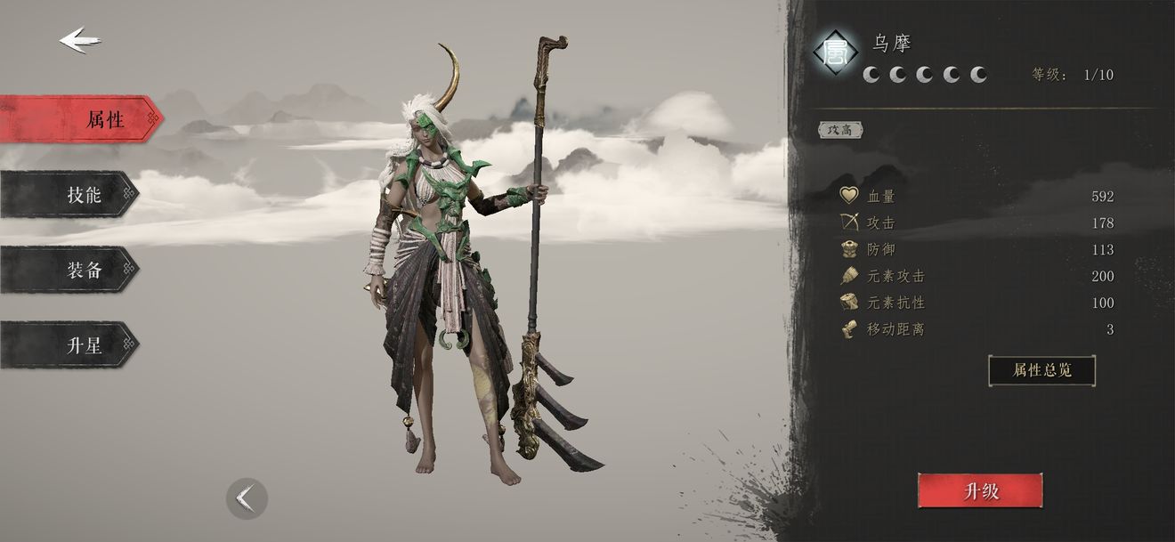 乌摩的外号就叫黑皮妹,是一个中规中矩的展示,腿很短,只能三格子移动,是一个没有直接元素反应的风属性,本质上可能是个物攻。她的攻击范围也不大,先会向前方的两格砍一刀,再对前身的横向两格范围内造成二段伤害,大招前方就是能造成3*3的范围伤害。整体表现就比较中庸,但基于没有什么大缺陷来看,就算一个T2角色吧。