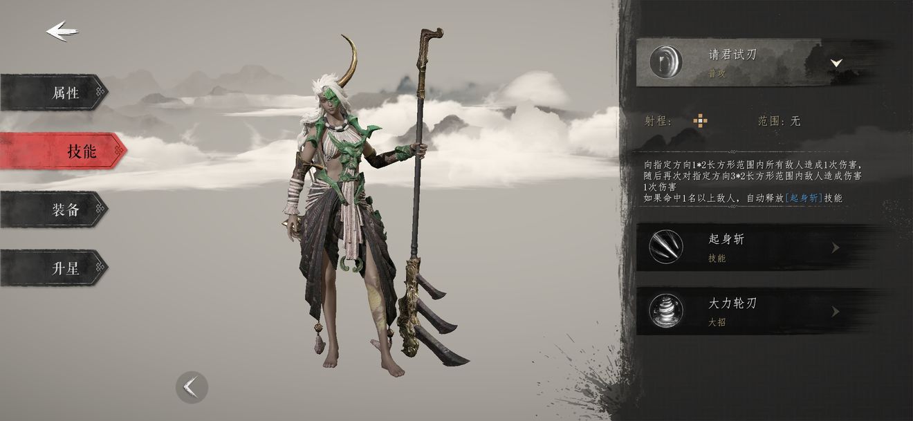 指定1*2的长方形范围内的所有敌人造成1次伤害,随后就再次对指定的方向3*2长方形范围内的敌人造成一次伤害。如果命中一名以上的敌人,就会释放起身斩。