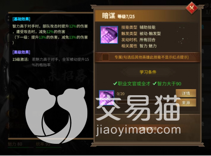 在阵容中他就属于是一个辅助型的角色了,暗谋大于攻击,可以在其中为其他的角色进行一定的加成,其次它的魅力点也是很有用的,可以带来的buff是全队起作用的,所以面对阵容来说是很适合使用的辅助。