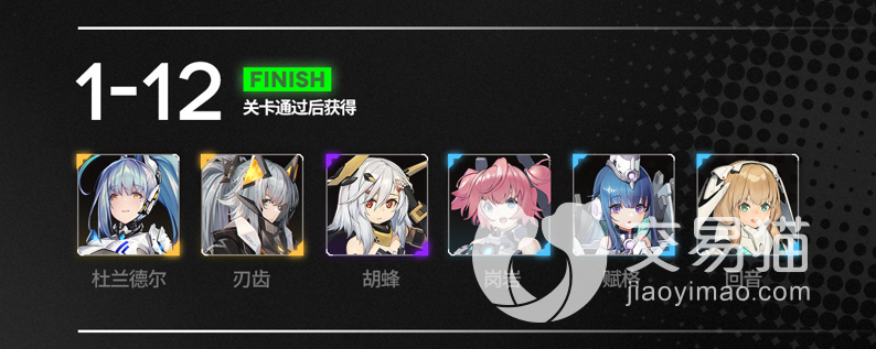打通1-12关卡之后,就能获得杜兰德尔、刃齿、胡蜂、岗岩、赋格、回音。