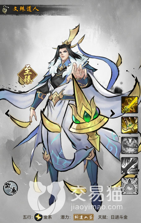 从定位上看,文殊道人就是一个非常强大的输出角色,他是元始天尊旗下的12金仙之一,是太乙真人以及姜子牙的师兄,无论是实力还是外观形象都是非常高大的,而且它还被称为智慧的象征,是很多玩家梦寐以求的角色,很值得培养。一共会拥有五个技能,其中前两个为主动技能,是可以是进行释放的,剩下的三个技能属于被动技能,当该角色达到一定的品质之后可以自动解锁,能够全方位的提升文殊道人的属性。