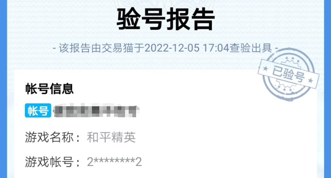 在买号的时候小伙伴还可以挑选那些经过平台验号的账号, 这些账号都获得了平台的验号报告。报告上清楚地显示验号的时间、属于什么游戏,并且搭配账号截图,让大家可以清晰明了的知道账号优势和具体情况,这样下单也会更加安心。