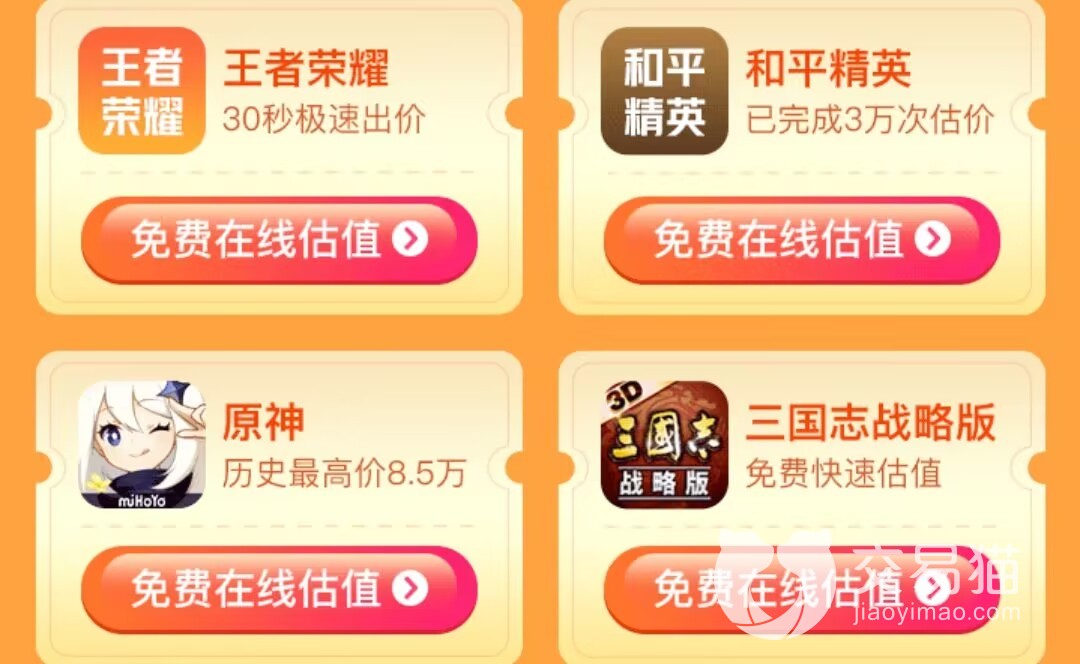 今天给大家带来的王者荣耀王者号多少钱目前就到这里了,掌握了这套交易猫独有的估价规则之后,有再多的王者号想要估价不就是轻轻松松的事情吗,如果嫌麻烦的话也可以直接使用免费估价功能哟,赶快点击上方链接下载吧。