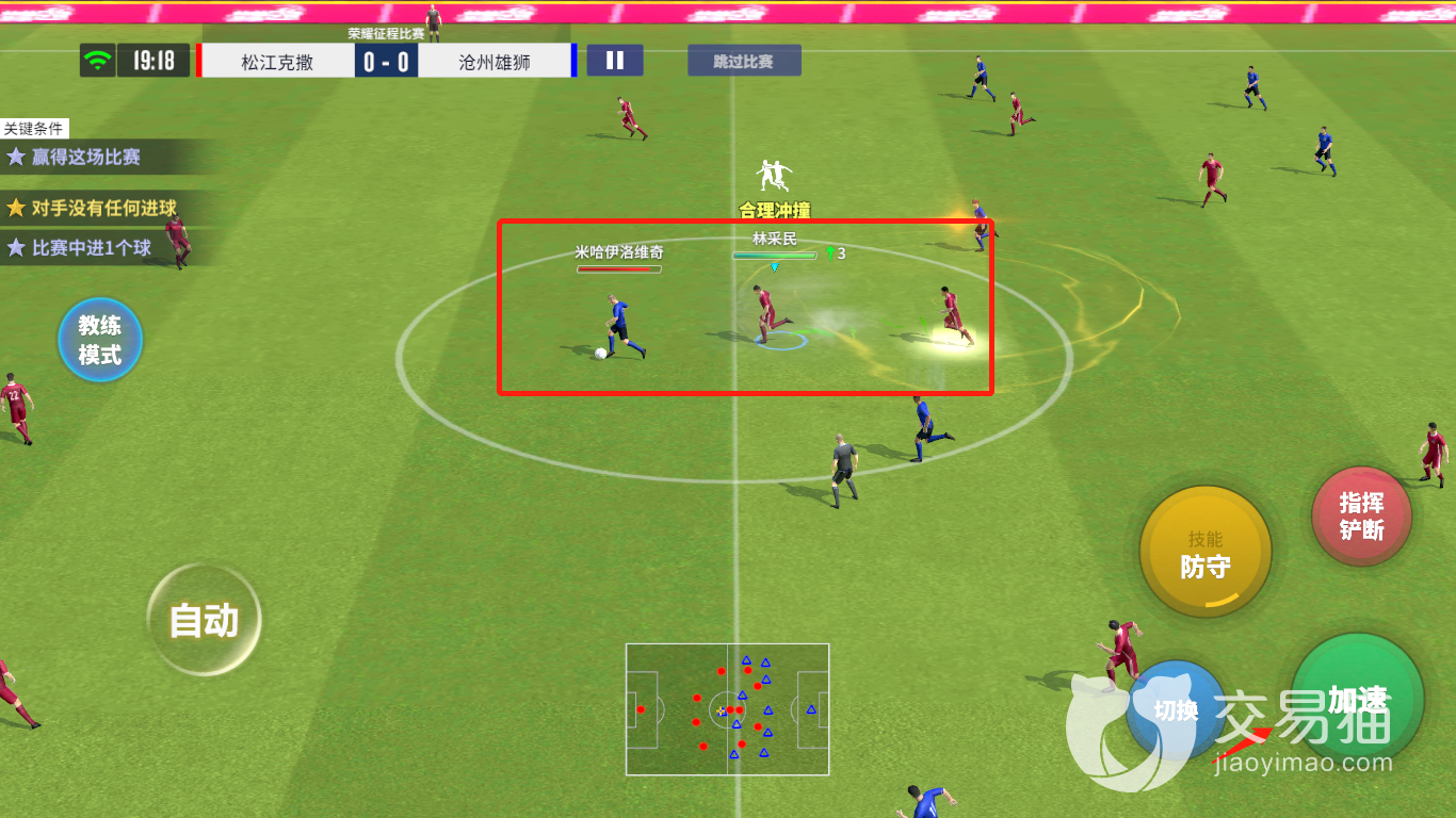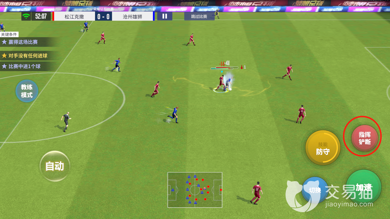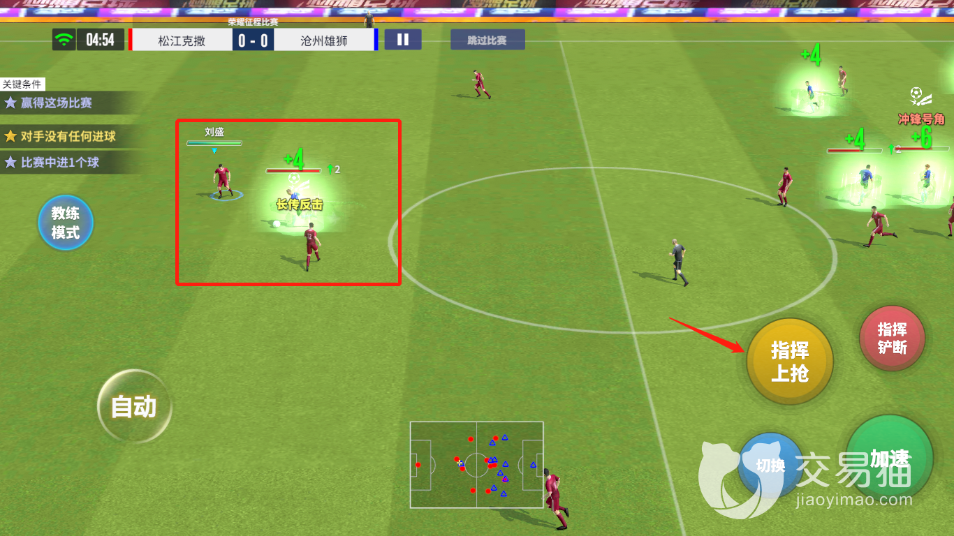 比如像上图中这样,己方两名球员已经对敌方球员包围过来,且距离足够近时,可直接点击指挥上抢。