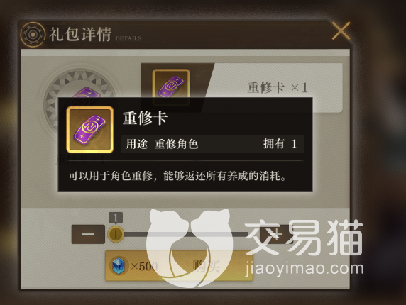 重置所用到的道具叫做“重修卡”,这个是一个稀有的材料,玩家可以在游戏首页界面点击“贸易”,然后再点击左边的“源晶商店”,就可以用500源晶购买一张“重修卡”了。