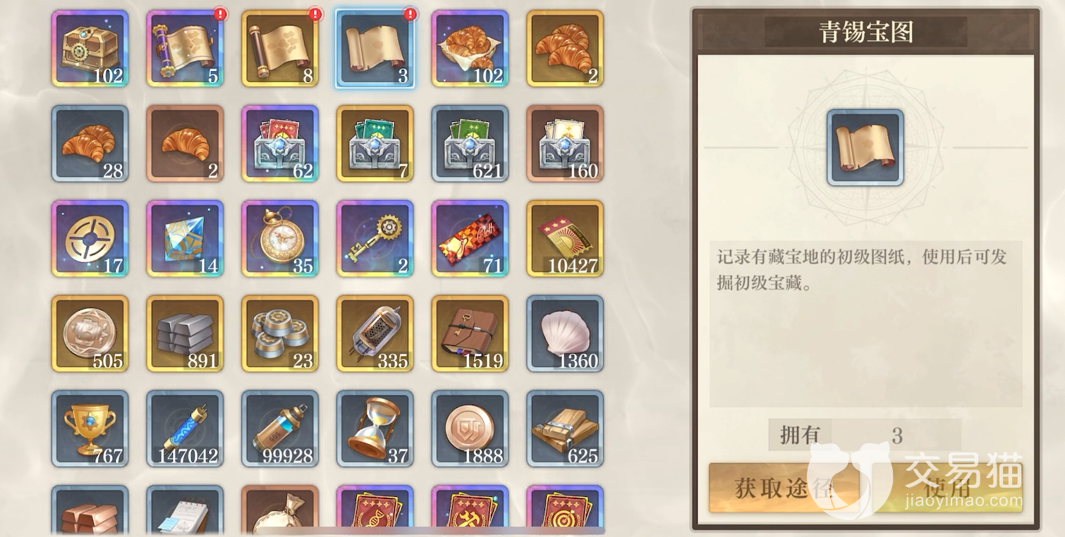游戏内有许多获得藏宝图的方式,最简单便捷的就是在商城直接购买礼包,玩家可以从游戏界面的“贸易”处进入,然后点击左边的“日常”,可以看到“周礼包”,打开后看到的第一个就是“每周宝图礼包”,购买以后就可以获得藏宝图了。