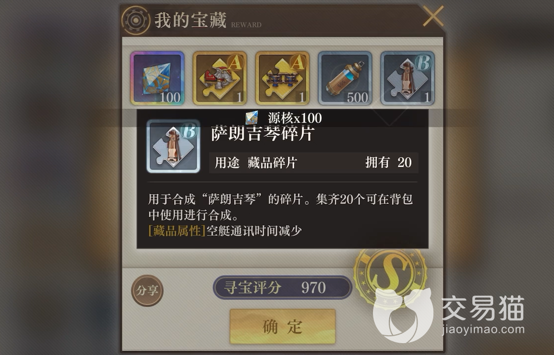 这些奖励也是很多养的,会有源核,还会有各种藏品的碎片,这些碎片集齐了一定数量以后可以进行合成,拼成一个完成的藏品,然后它们会根据自身的属性给玩家添加各种永久增益效果。