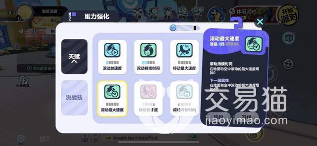 2、游戏是有天赋的设定的,只要玩家点了天赋点之后,自己的蛋仔在某些方面的属性会有所加成,如滚动速度加成、滚动冷却时间缩短、移动速度加成等等,不过玩家能够使用的天赋点有限,玩家可以搭配合适自己技能的天赋进行加点。