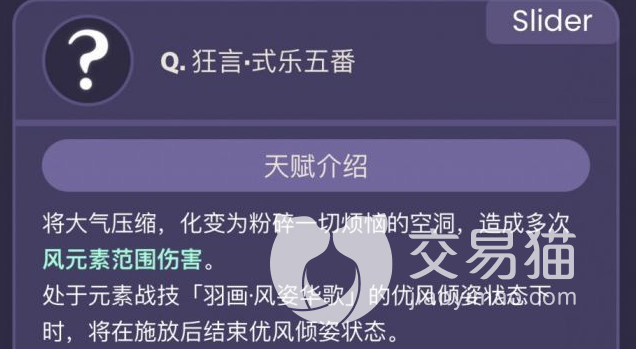 在使用该技能的时候,流浪者会对自身周围造成一定的伤害,并且跳跃到半空中转换成【优风倾姿】状态,在这个状态下,流浪者自身的普通攻击伤害和重击伤害的范围都得到了增加,而且在使用重击的时候不消耗体力了,但是在该状态下,角色的任何位移行动都会消耗一定的空居力,当该力量消耗完毕之后就会结束该状态。
