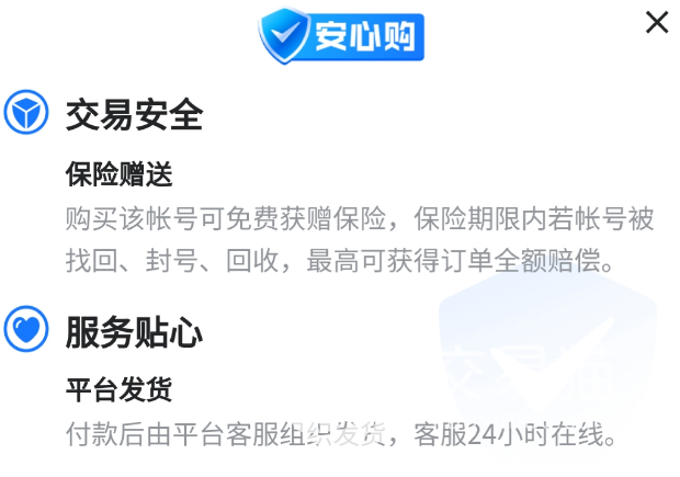 能够选择交易猫的理由有很多,但在小编看来最重要的肯定还是安全,每次购买一个账号,平台都会提供双重保险来选择,一个是免费的“安心购”另外一个是后续的付费保险,不过只有前者就能享受找回包赔的服务,要是觉得不够放心的话再去加购保险即可,这样就完全不担心找回了。
