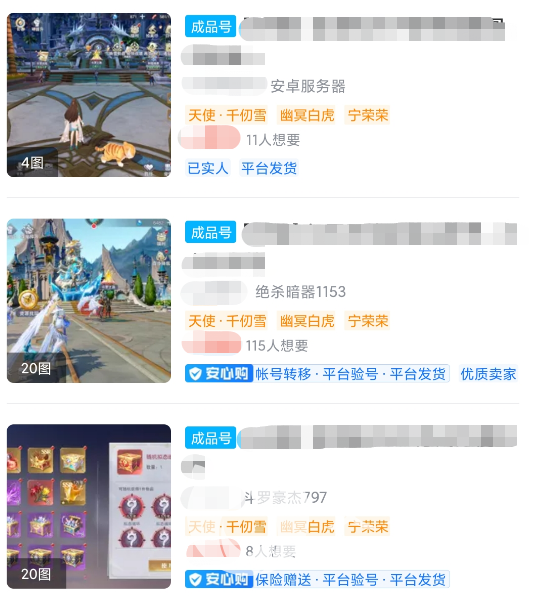 交易猫里面不仅只有开局号,像是成品号的数量也特别多,以至于如何去选择可以直接到专区里面去找,每个账号的标题前面都是有标注的,想要什么账号直接去对应寻找即可,不过开局号的价格会相对低一点。