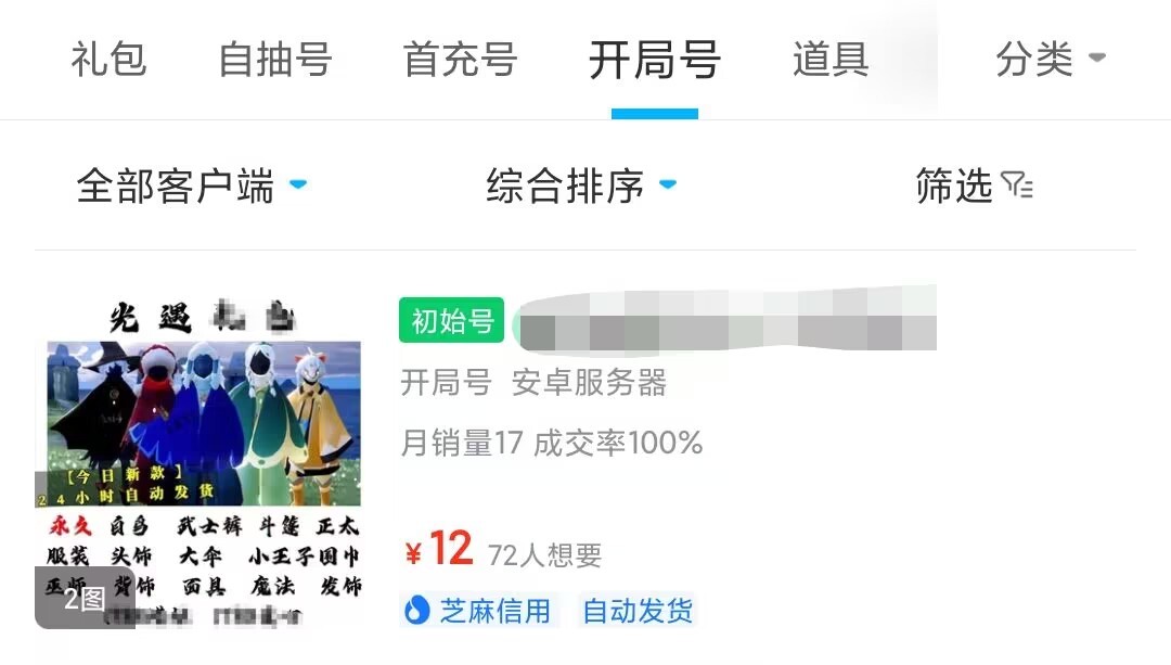 如果说真的只有100的预算,那么小编的个人建议是大家选择自抽号和开局号,这样开局就可以获取数百个的蜡烛让大家自己在每个赛季中去抽,运气好的话像什么武士裤、正太头、小王子围巾、巫师、以及大伞这种都是可以自选开局的,但是初始号仍然是建议大家优先看看有没有开好七门、开好先祖,而且是找那些可以绑定邮箱、绑定手机、并且可以改密码的三无账号。
