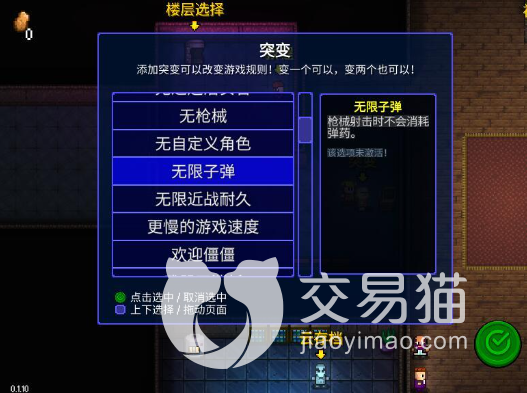但是在前期大家可以选择的突变属性也不是很高级的属性,一般来说都是后期才可以根据玩家的实力来开启突变属性,小编的推荐是如果喜欢远战的你可以选择无限子弹这个突变属性,这样可以保证大家开火的时候不消耗子弹。