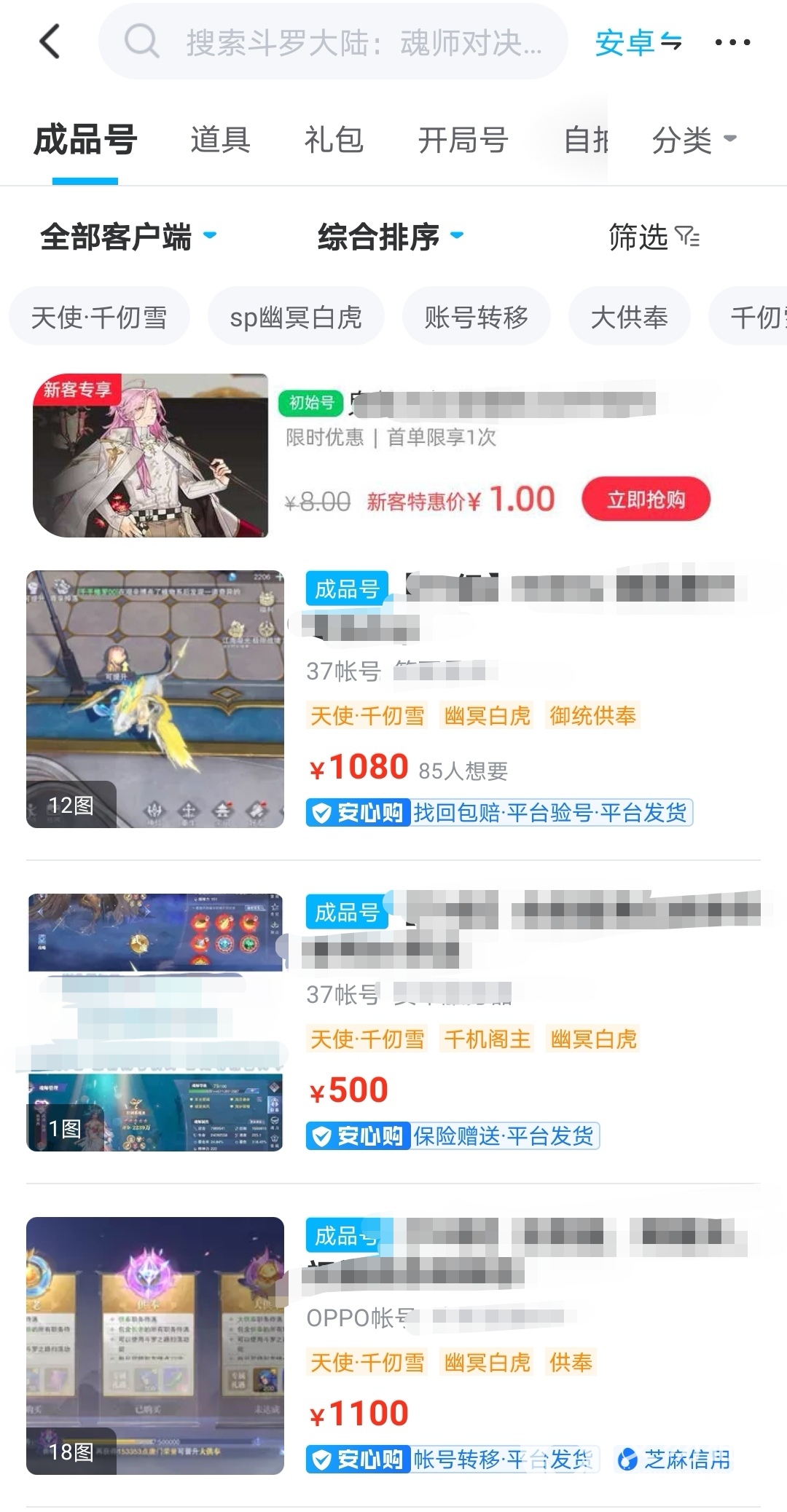 平台从2013年发展至今,时下热门的手游均已开通交易专区,卖家认可度高,大众会首选交易猫上架自己的账号,所以买家在这里能尽情挑选。魂师对决这款手游的账号商品,小编都就看不过来,商品太丰富了,让人都挑花了眼!