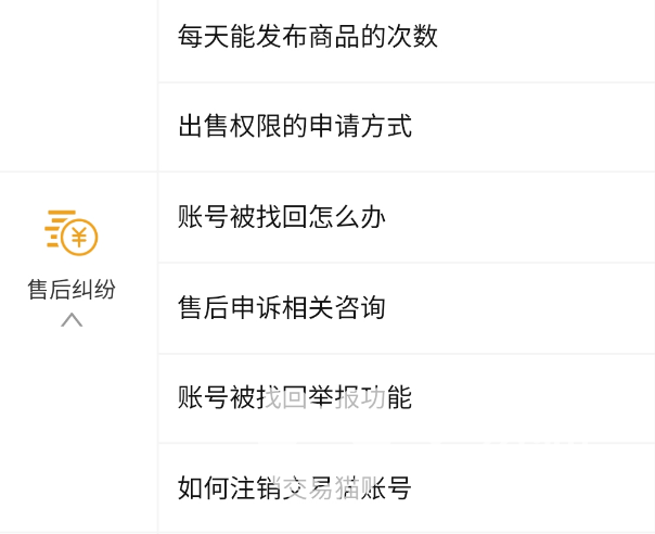 3、在交易猫里买号最不怕“找不到人”,因为客服都是全天候在线等待着用户,智能客服解决不了的问题直接转接到人工客服,还可针对售前或售后来选择问题,具体的内容在客服专区里都能找到解析,这里的回答绝对要比其他平台全面多了。