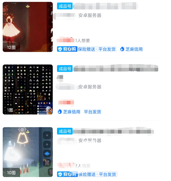 1、一个账号交易平台好还是不好,首先就得看有多少卖家入驻,光是光遇白鸟号就有上百个,在专区里面各式各样的账号都不匮乏,每一个账号前面的标题都对应了号品,想要初步了解游戏的话就买开局号,要是觉得就想趁早毕业的话就买成品号即可。
