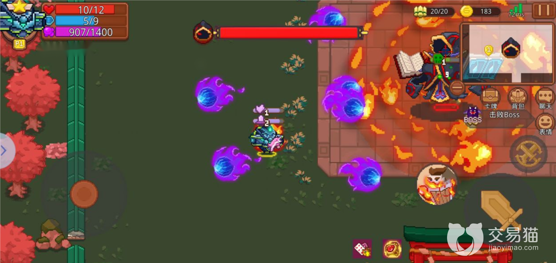 难度一的称号是霜炎术士入门难度,但是没加加好天赋带上差不多的卡片也是打不过它的,近战武器对它的效果不是很理想,除了40米大砍刀基本上是摸不到它的所以,都要携带远程的武器例如枪或者弓箭等才好打它,刚开始攻击很平和就是对紫色的火球,速度很慢比较好躲开,然后为了防范过于变态的近战武器,还会在脚底下放一团火圈,只要触碰就会持续掉血。远程攻击它之后它还会在地面升起一团火,摸到也是会烧伤,但是释放一般会有显示所以还是可以躲开的,血量低于一半之后他就会变透明对玩家使用近战攻击。除了火焰魔法,这个家角色还精通,水法术困住玩家冰地灵协助释放冰攻击玩家,这些都是穿插在主要攻击当中的需要主要躲避和及时摧毁。