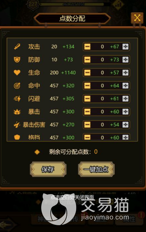 在分配方面,我们可以自由的对于攻击防御,生命命中等等十多项属性进行自由的分配。在游戏的初期,这种点数分配的好坏决定了我们玩家之后要组成怎样的队伍进行战斗。当然也不用太过纠结,如果实在不知道应该加哪个属性的话,就可以选择一键加点。这时候,系统会自动分配属性到各个地方。