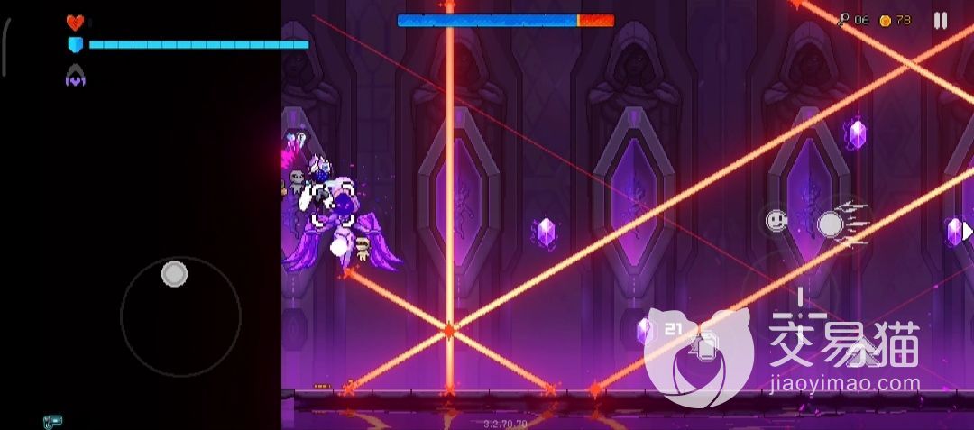 遇见真雅典娜前,玩家按流程会先和普通版本的雅典娜战斗。你可以在游戏过程中通过“智斗”过关来积攒信仰值,具体表现为护甲条下方的紫色头像,攒满时就可以在这层地图中进入一次智慧神殿,“智斗”的具体形式有无伤,与点了对应天赋后场景中存在的水晶系道具交互,角色受伤,或者攻击水晶道具都会降低信仰值,导致无法进入智慧神殿。