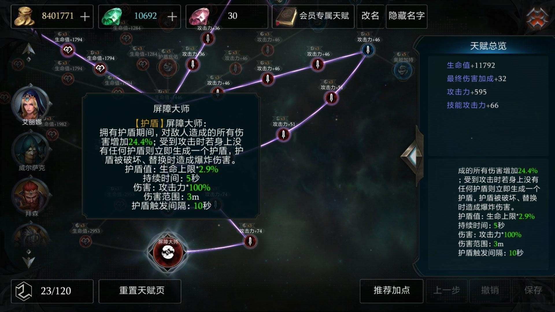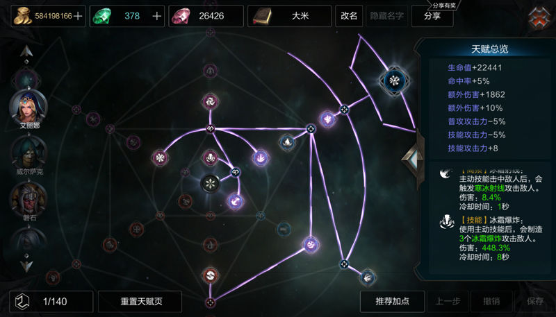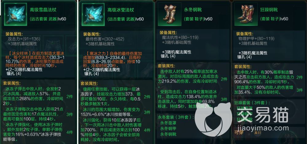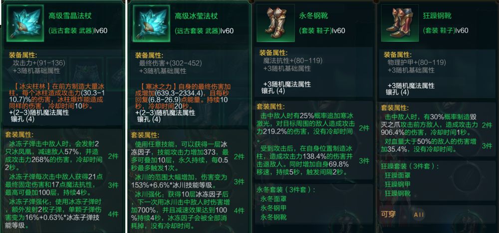 在属性选择方面,输出自然是第一核心,技能攻击力,攻击力都是最高优先级,然后是蓝量恢复,免伤,血量恢复这些常规属性。防具位置以生命为主,血量撑得越高对技能加成也有帮助,而武器则选择最终伤害,攻击力和吸血反而没那么好,尤其是吸血,对冰女大多数流派来说比较鸡肋。