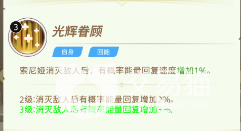 另一个技能是进行自身恢复的,当期击杀了一个敌人之后,便会有一定的几率加快角色的能量恢复速度。这个并不是确定性因素,可如果在实战中能够触发这个效果的话,对自身的输出环境有很大的帮助。