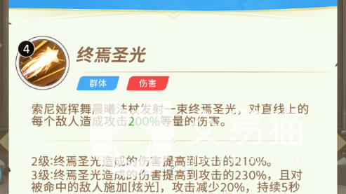 这个角色的技能也并不难理解,她的首个技能输出群体攻击,使用之后会对前方直线区域中的敌人进行攻击,会对它们造成百分之两百的高额等伤。并且随着技能等级的提升,之后输出的伤害会变得更高。