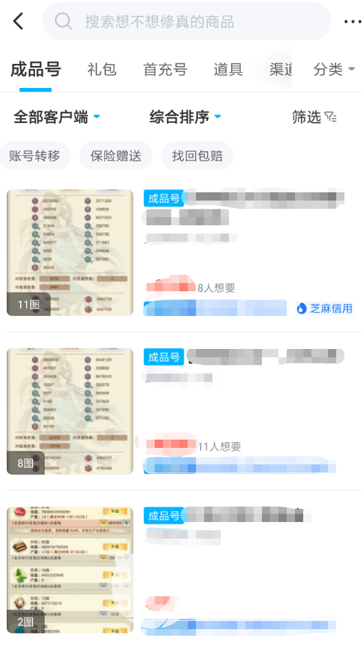 2、在想不想修真的单独专区内,各种游戏账号的交易信息会直接展现在大家眼前,各位在挑选的时候可以从自身的实际使用需求触发,这样就能够更快筛选出满意的商品。同时,卖家也会提供真实的游戏截图让大家进行参考。