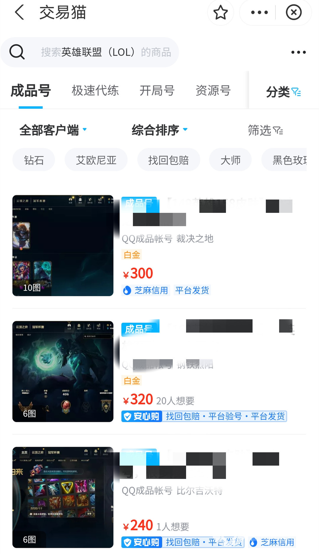 虽然lol是一款十分强调真实的游戏,但是在lol中依然有很多特殊的东西是可遇不可求的,比如超级号就是其中之一,那么lol超级号能买吗,如果是和别的玩家直接交易,十有八九会被欺骗,但是在专业lol账号购买平台上交易,就可以获得货真价实的账号,小编今天就为大家隆重推荐交易猫这个账号交易平台。
