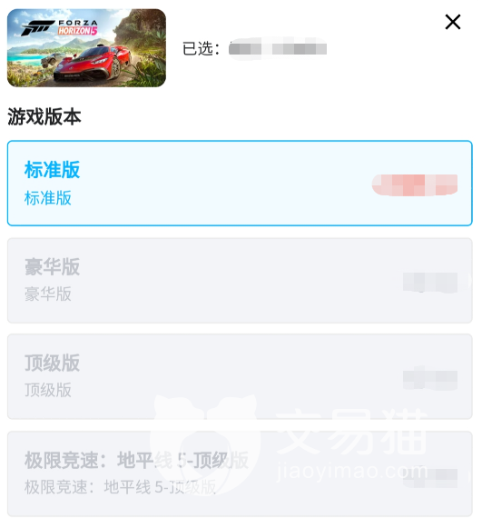 目前能买到地平线5账号的平台并不多,而交易猫就算其中之一,在这里可选择标准版、豪华版以顶级版,每个版本的账号数量有限,想要买的时候需要提前去关注一下,最好将商品添加到自己的收藏当中,这样补货时就会有提醒了,快快先下载一个交易猫吧。