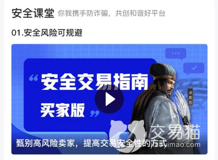 这恐怕是大家最关注的问题了吧,账号交易涉及到了现金,尤其是学生党和上班族,自己的钱都是工作、兼职甚至是父母给的,谁都不希望自己被骗,当大冤种,因此账号交易是大家比较看重的地方,在交易猫中,有成套的安全规定,大家不用担心会遇到骗子,另外安全系统中还有安全小课堂,仔细看看能有效帮助大家避坑。