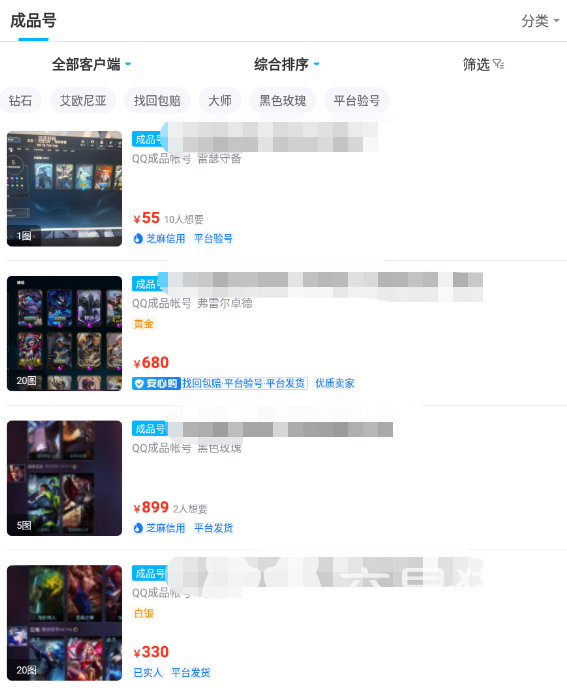2、买家与卖家用户多,账号类型百花齐放。交易猫平台上汇集多种成品号,资产号,高段位号,用户可以查看账号的关键信息:账号等级、段位、英雄数量与皮肤质量、召唤师等级等,轻松拥有史诗级稀有皮、最强王者的账号。